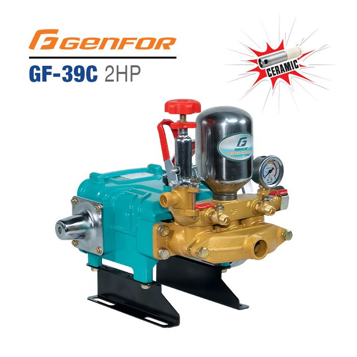 Đầu Bơm Cao Áp Pít tông sứ GENFOR GF-39C (2HP) làm tăng lưu lượng và áp lực giúp nước phun mạnh và xa hơn. Thường được kết hợp với mô tơ/động cơ nổ và ống hơi PVC để ráp thành bộ phun xịt với các tính năng sau: phun thuốc trừ sâu, xịt rửa, phun sương, bơm tưới…