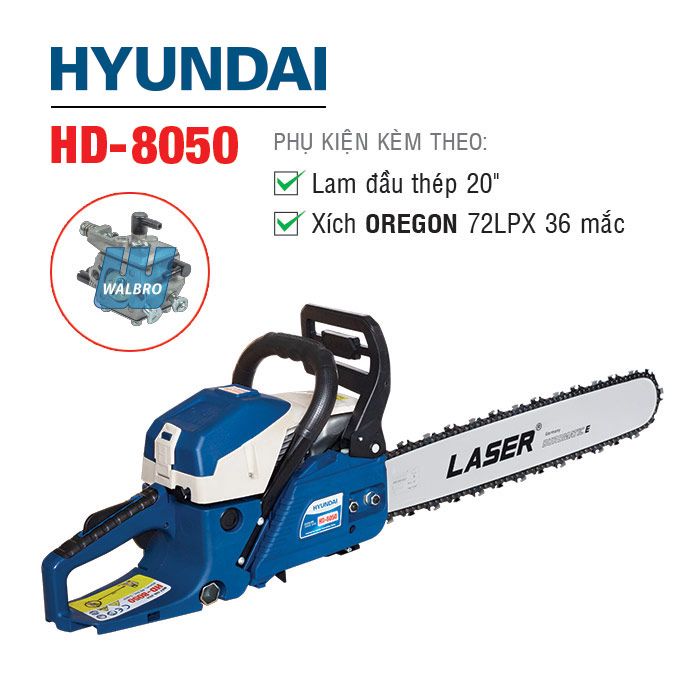 Máy cưa xích HYUNDAI HD-8050 (Lam đầu thép 20", Xích Oregon 36 mắc)
